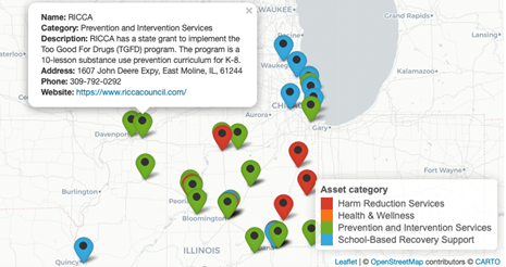- Behavioral health asset mapping helps identify gaps in the system. When government entities want to start new programs or release new grant opportunities, behavioral health asset mapping can be a useful step in understanding the landscape. For private organizations looking to expand, asset mapping is a great place to view all resources and where more services or resources are needed. THS recently put together a map of organizations that have grants from the state of Illinois for a client. As shown in Figure 2, the map documents various organization types within the behavioral health spectrum, from prevention to recovery. This is an example of how a government entity might use asset mapping to visualize where funding is being allocated.
